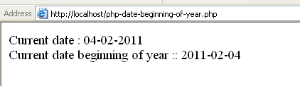 In this tutorial you will learn how find PHP date beginning of year in a PHP web application. The code of "php-date-beginning-of-year.php" given below :