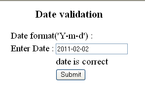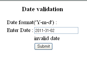 If enter any invalid date in text input and click "Submit" button then display output as :
