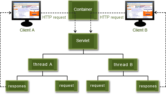 A Servlet is also a java version of CGI, which written in java. It takes the advantages of java to handle the client request. When the server started it initiates the servlet and keep into the memory. The servlet creates only one process and uses uses thread for handling the client request. When a new request come from the client it create a new thread for that client and allocate them. It does not takes the overhead of creating new process for each client, which is takes more memory in compare to creating a new thread. Because thread is lighter than the process.