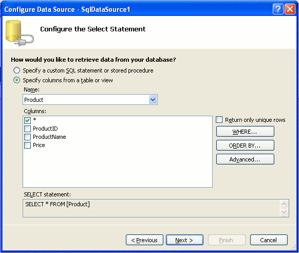 In this article we will discuss how to use SqlDataSource in your application. SqlDataSources similar like other data sources as ObjectDataSources, EntityDataSources, XmlDataSources etc. In this example we use GridView and provide data using SqlDataSource. Click smart tag button of GridView and Choose Data Source.
