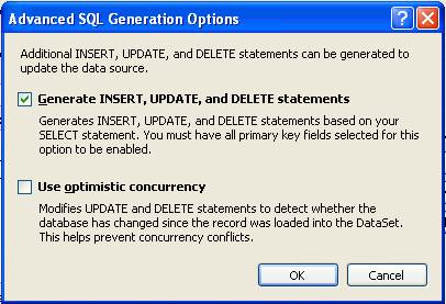 Step 4. Now enable Generate INSERT, UPDATE and DELETE Statement checkbox and click OK and next.