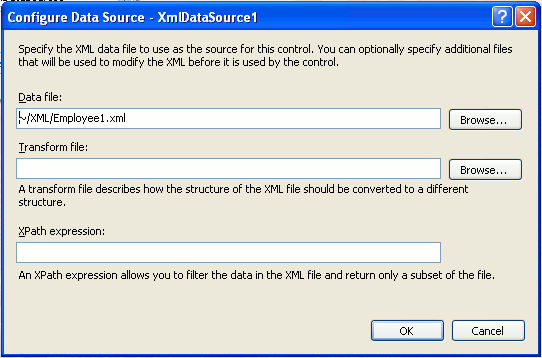 The XmlDataSource is a data source control which is used to bind data with data bound control. The XmlDataSource represents an Xml data. It is used to display both hierarchical and tabular data. The XmlDataSource loads Xml data from Xml file. In this example we use a TreeView and bound data with XmlDataSource.