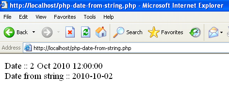 $date_string = "2 Oct 2010 12:00:00";